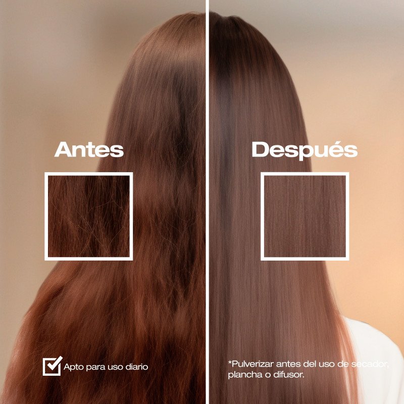 Aplicarlo es muy sencillo, simplemente pulveriza uniformemente Keratin-Plex Liss sobre el cabello húmedo o seco antes de usar cualquier herramienta térmica. Asegúrate de cubrir bien las puntas, ya que son las más propensas a la rotura. No es necesario enjuagar el producto, simplemente seca tu cabello con secador y utiliza como de costumbre las planchas o el rizado.